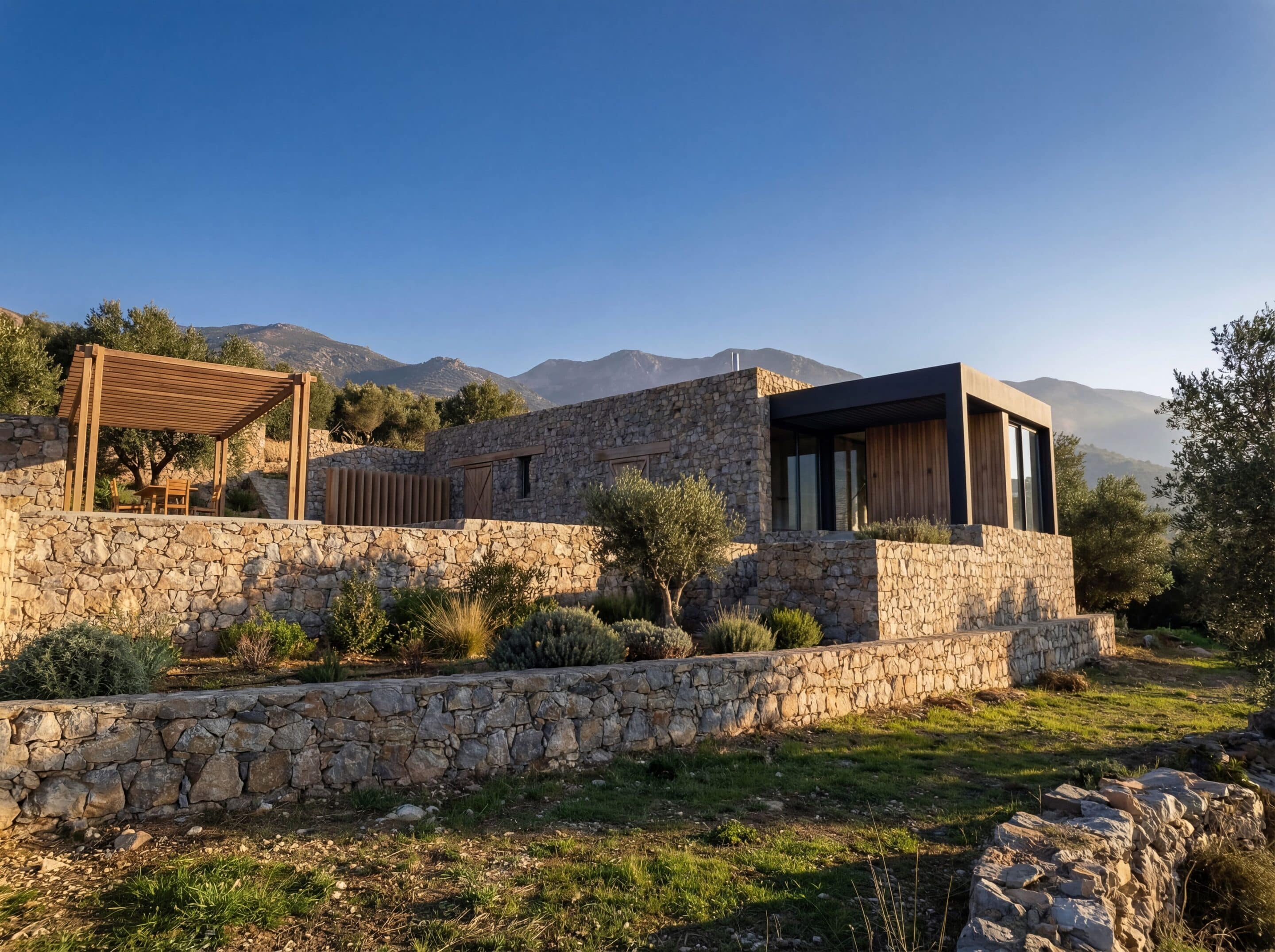 Located in Argaki tou Poumi in Pedoulas, this listed mountain dwelling is reimagined as a careful dialogue between heritage and contemporary living. The intervention preserves and consolidates the original stone structure, allowing its massing and material character to anchor the project, while new volumes and terraces step gently with the natural slope to frame views toward the surrounding valley. A sheltered courtyard becomes the organizing heart of the house, balancing protection and openness within the mountainous climate. Locally sourced stone, timber pergolas, and deep-set glazing reinterpret vernacular construction through a restrained contemporary language, ensuring that the architecture remains rooted in place—solid, adaptive, and quietly integrated within the landscape of Poumi Creek.